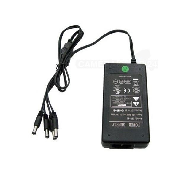 12 volt gestabiliseerde DC voeding met een maximale belasting van 5000mA. De adapter heeft 4 aansluitingen. Een ideale netadapter om CCTV componenten te voorzien van een degelijke voeding. Elektronische geschakelde adapter 110v tot 240v (geschikt voor 220v). De adapter is van hoge kwaliteit, is beschermd tegen kortsluiting en ce tuv/gs gekeurd. Deze adapter is zeer geschikt om vanaf een centraal punt 1 tot 4 camera's te voeden. Ook kunt u bijvoorbeeld een DVR recorder samen met 3 camera's voeden. Door deze adapter te gebruiken heeft u maar 1 adapter nodig in plaats van 4 losse adapters. De adapter wordt geleverd inclusief netsnoer.